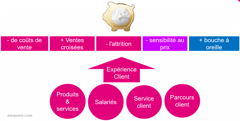 - D’un côté, on affiche orientation client, satisfaction, expérience…